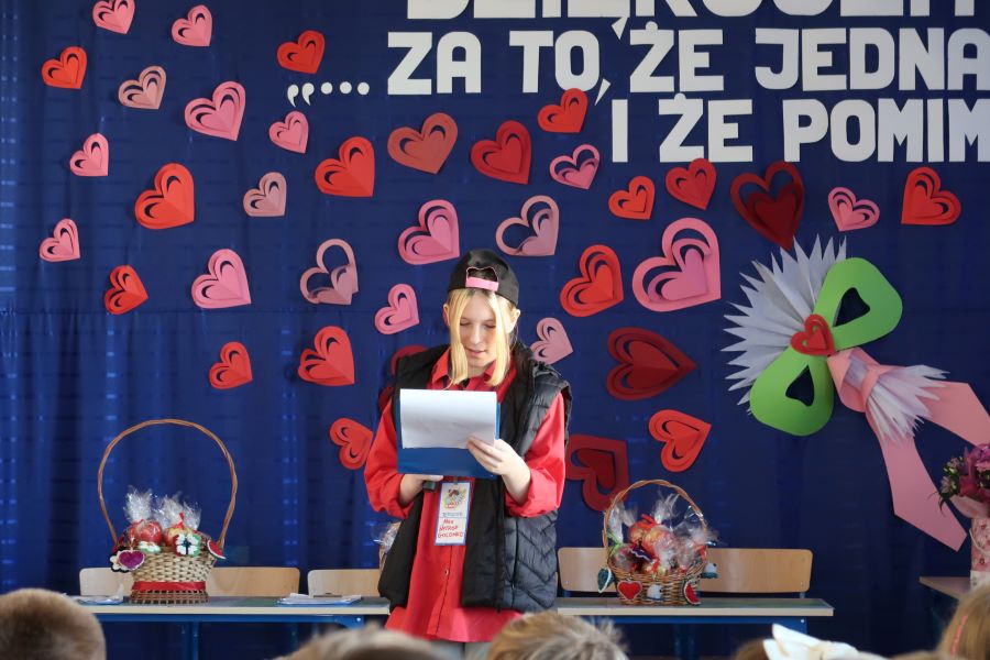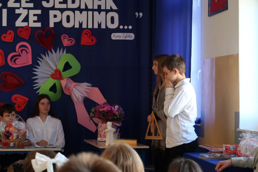 13 października 2025 roku w SP w Wilkowie odbyły się obchody Dnia Edukacji Narodowej. Samorząd Uczniowski wraz z uczniami z różnych klas zaprezentował przygotowane przez siebie przedstawienie. W atmosferze reporterskich podróży mieliśmy okazję obejrzeć, jak toczy się życie uczniów, nauczycieli i pracowników szkoły na przerwach, lekcjach oraz w chwilach relaksu. Nie zabrakło również piosenek związanych ze szkołą oraz drobnych upominków wręczanych przez uczniów dla adresatów tego święta.