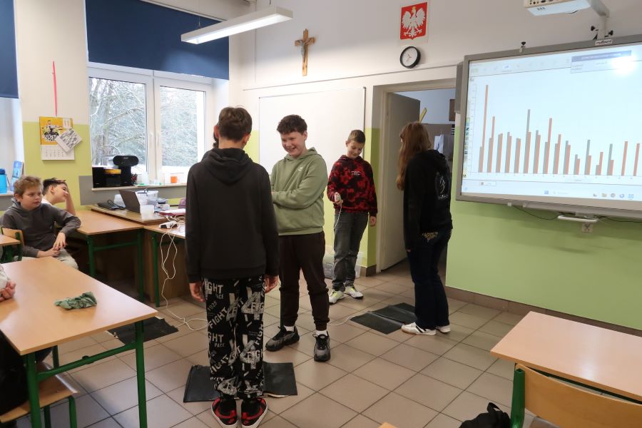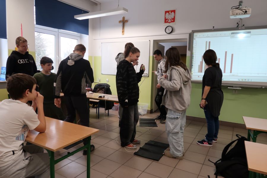 Podczas zajęć uczniowie mieli okazję pracować ze sprzętem wykorzystywanym do badań oraz obserwacji procesów zachodzących w środowisku i w organizmie człowieka: mierzyli szybkość reakcji z użyciem urządzeń do cyfrowej rejestracji czasu odpowiedzi, a także badali stężenie dwutlenku węgla, korzystając ze specjalistycznych czujników i aplikacji pomiarowych.