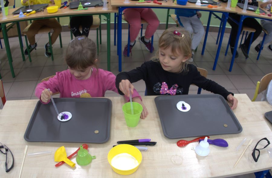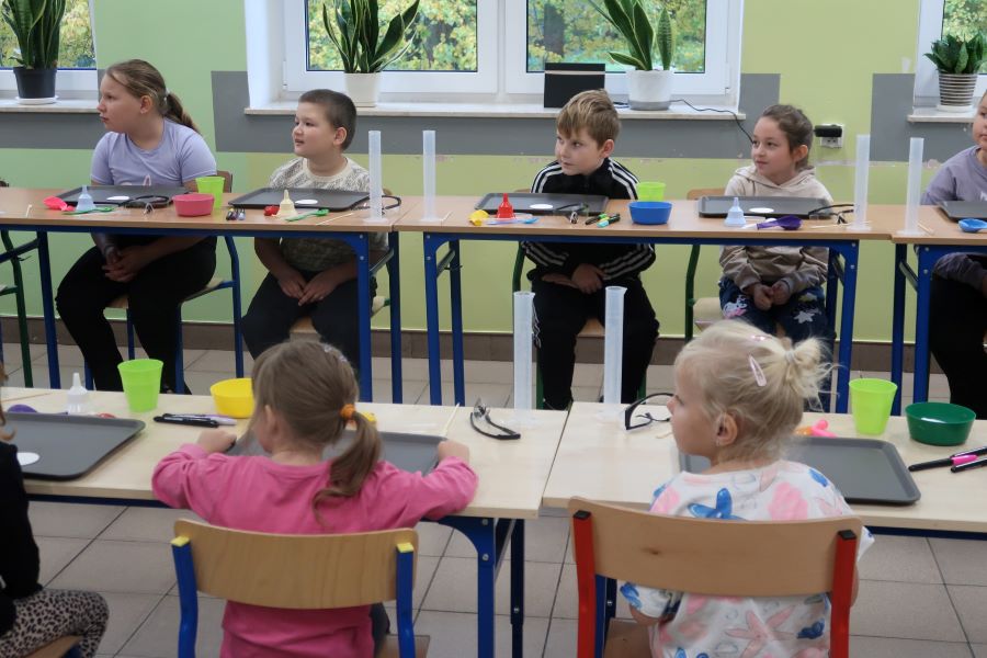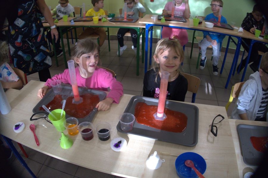 15 października w oddziale przedszkolnym i klasach I-III odbyła się „wybuchowa lekcja”. Animatorzy z „Taka to impreza” przeprowadzili dla najmłodszych magiczne eksperymenty. Dzieci wraz z prowadzącymi zaopatrzeni w specjalne okulary samodzielnie realizowały zadania: nakładanie kropli farb na olej, napełnianie balonów sodą, zakraplanie wody. Najbardziej efektownym elementem lekcji było tworzenie wulkanów. Oczywiście każdy z nich wybuchł, tak jak radość uczniów, że udało się do tego doprowadzić.