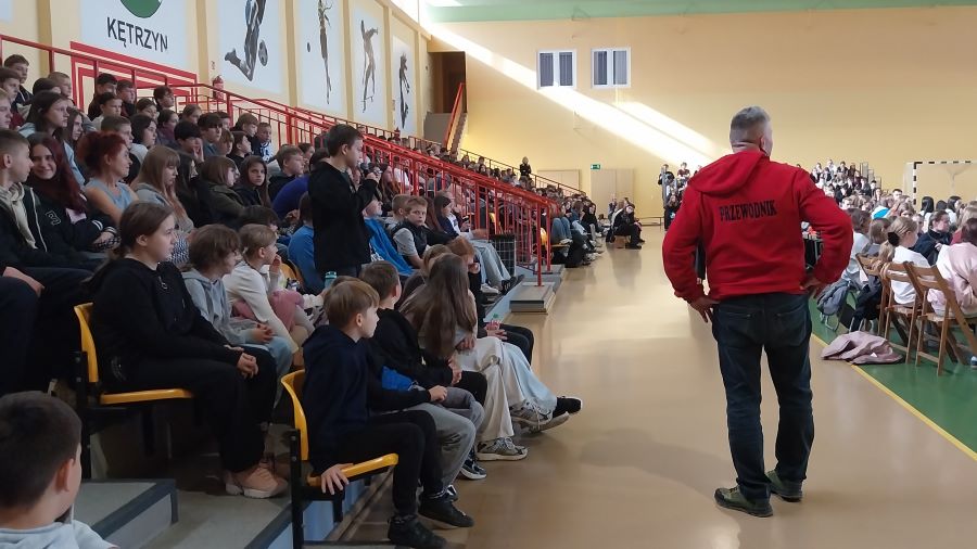 8 października 2025 r. w Miejskim Ośrodku Sportu i Rekreacji w Kętrzynie odbyło się wyjątkowe spotkanie uczniów szkół podstawowych z Łukaszem Kazkiem – dziennikarzem, autorem książek i filmów dokumentalnych oraz popularyzatorem historii.