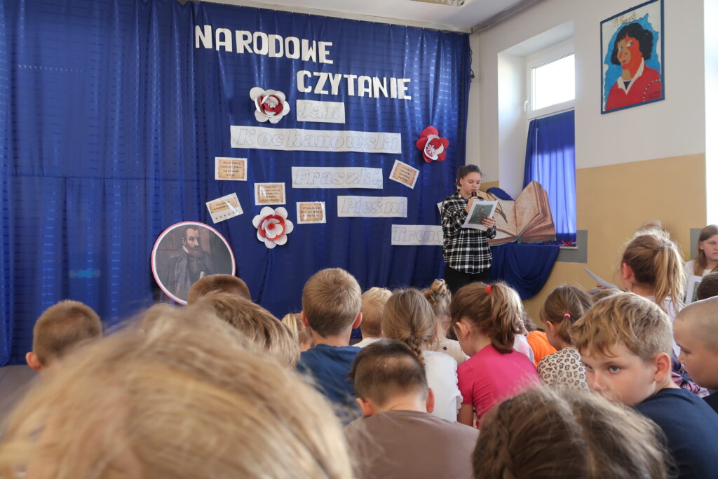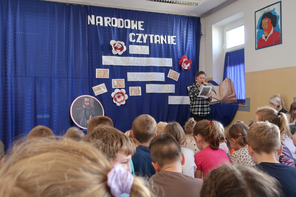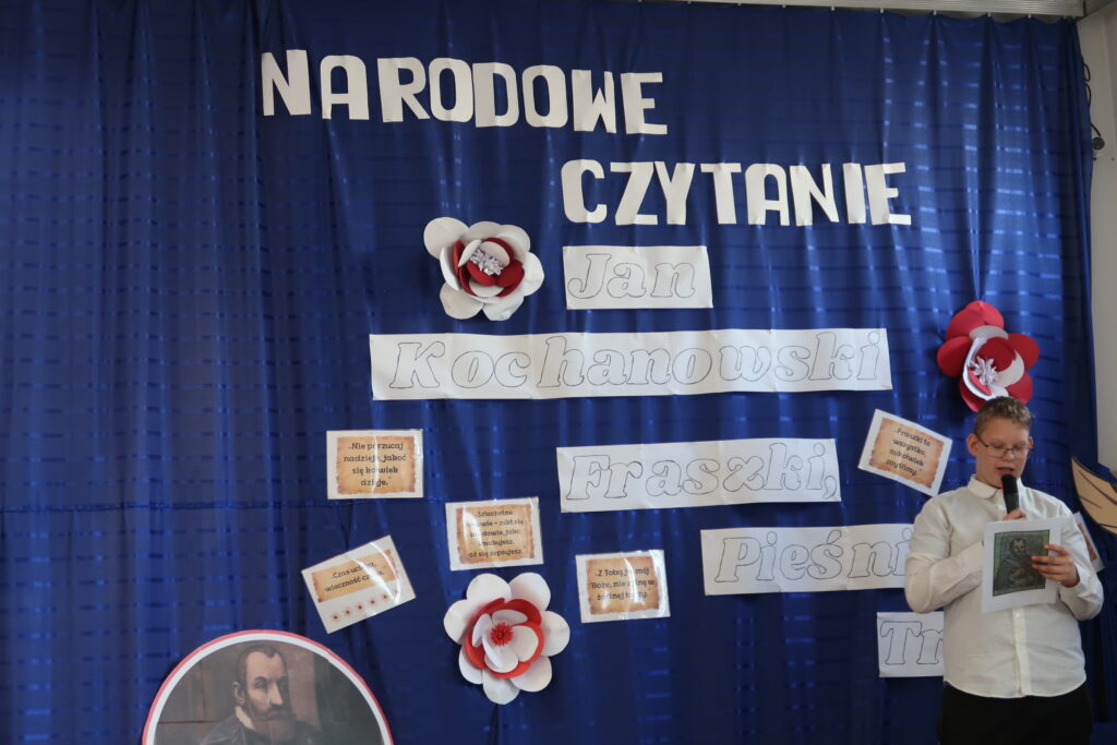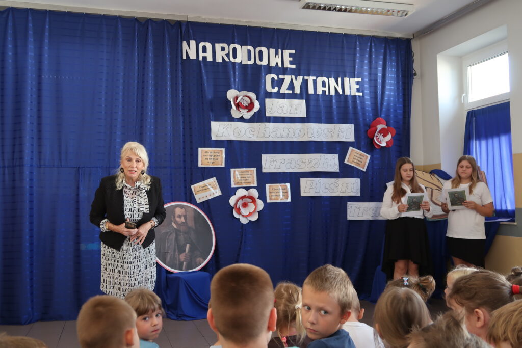 W naszej szkole, dnia 15 września 2025 r. odbyło się wyjątkowe wydarzenie – Narodowe Czytanie, którego celem było popularyzacja klasyki literatury polskiej oraz wspólne odkrywanie piękna ojczystego języka. W tym roku społeczność szkolna miała okazję wysłuchać fragmentów twórczości Jana Kochanowskiego. Szczególnym momentem było odczytanie przez dyrektora szkoły, pana Jaroslawa Charkota fraszki „Do gór i lasów”, co podkreśliło rangę wydarzenia i nadało mu uroczystego charakteru. Zainteresowanie wzbudziła również fraszka „Na zdrowie”, przypominająca