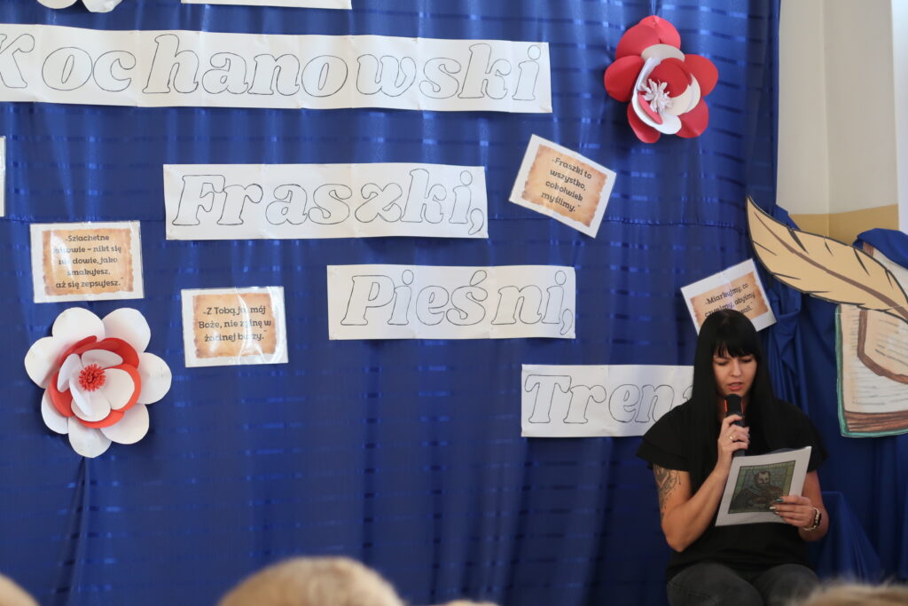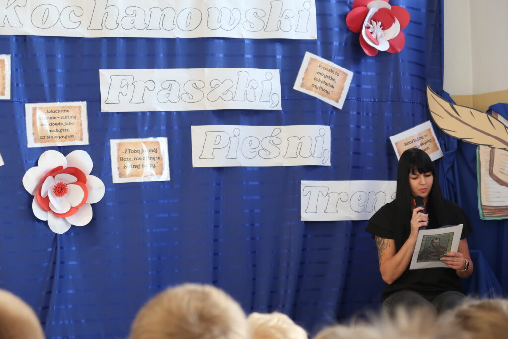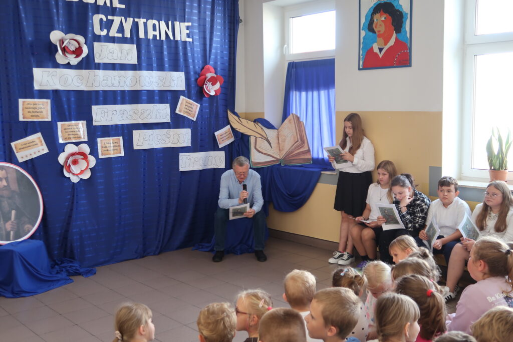 z odkrywania klasyki literatury polskiej. Dzięki tej inicjatywie uczniowie mogli lepiej zrozumieć rolę literatury w kształtowaniu polskiej kultury i tradycji. Spotkanie zakończyły dodatkowe zadania do wykonania w klasie (puzzle, krzyżówki, wykreślanki, układanki), które skłoniły uczniów do wspólnej rozmowy o wartościach płynących z twórczości Jana Kochanowskiego oraz refleksji nad ich aktualnością we współczesnym świecie.