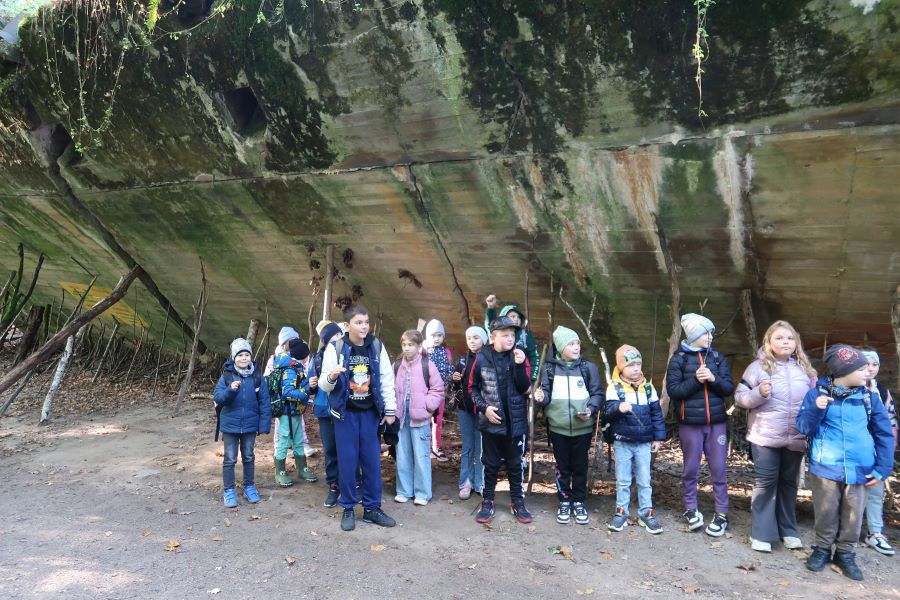 7 października 2025 r. klasy I – III wybrały się na wycieczkę. Jako cel podróży została wybrana była kwatera Hitlera „Wilczy Szaniec” w miejscowości Gierłoż.  Oprowadzał nas i bardzo ciekawie opowiadał o tym miejscu przewodnik pan Sławomir Adamkowicz.  Niektórzy z uczniów byli tu pierwszy raz. Wielkie o grubych ścianach bunkry z okresu II wojny światowej wywarły ogromne wrażenie. Dowiedzieliśmy się, że A. Hitler przebywał tu około 800 dni. Podobno też tutaj zapadła decyzja o stłumieniu Powstania Warszawskiego. Mieliśmy także okazję wejść do środka bunkra i na „własnej skórze” poczuć atmosferę tajemnicy. Słuchając opowieści wyobrażaliśmy sobie, jak w środku kiedyś mieszkano. Oprócz bunkrów obejrzeliśmy wystawę poświęconą walczącej Warszawie. Spacer wśród lasu będzie nie tylko miłym wspomnieniem, ale także lekcją patriotyzmu lokalnego. Nie ważne, ile ma się lat – warto poznawać historię najbliższej okolicy.