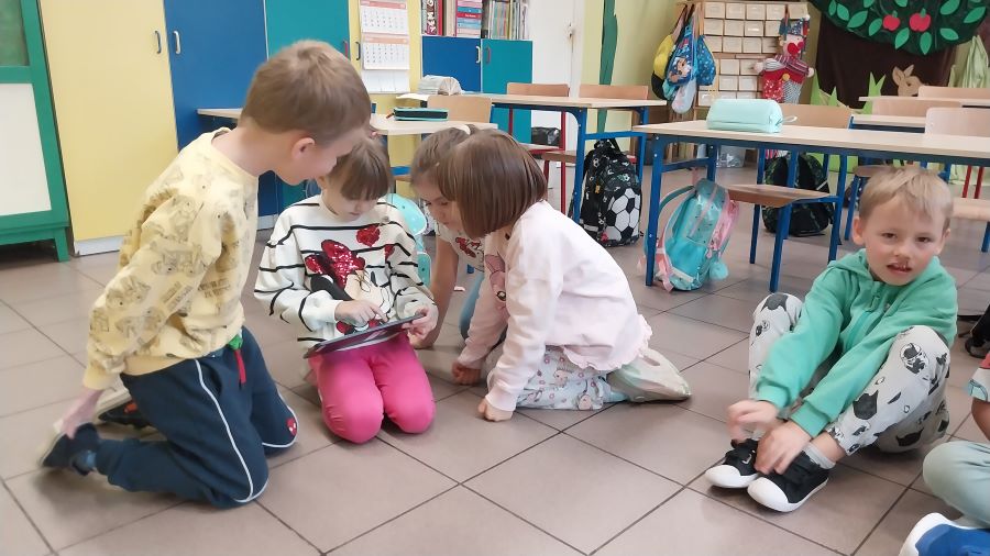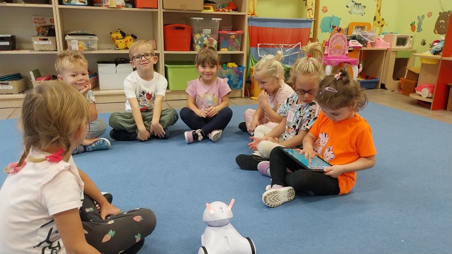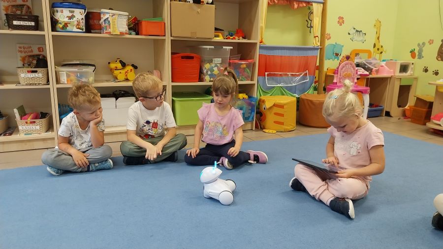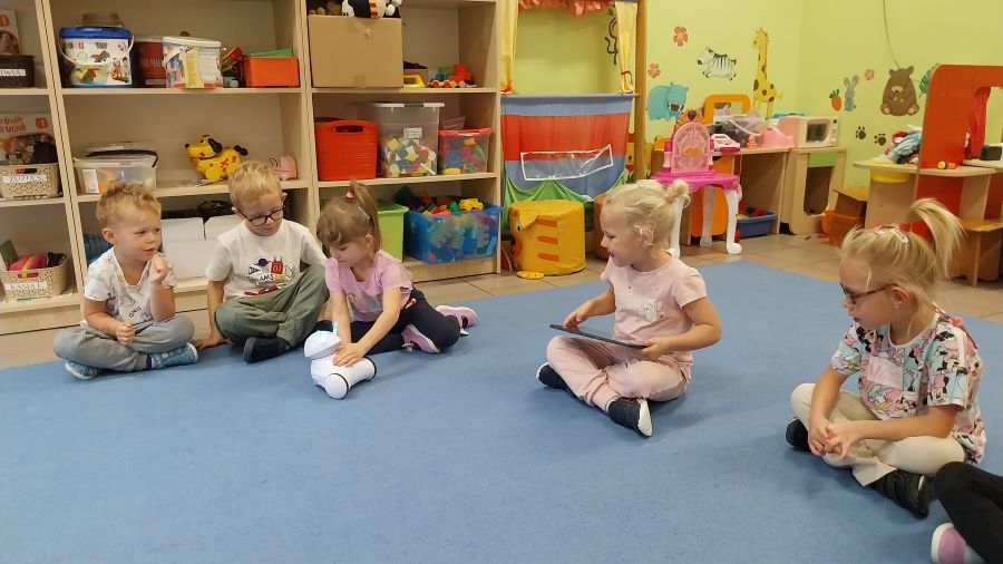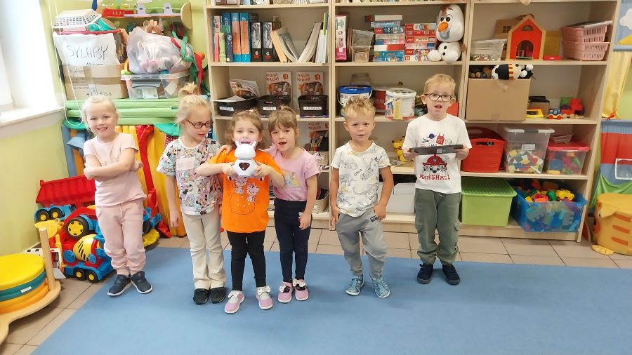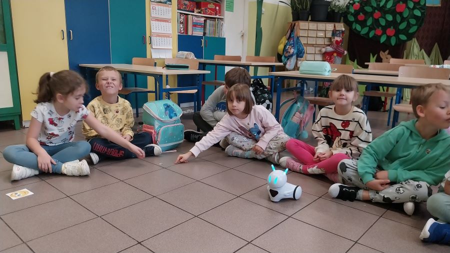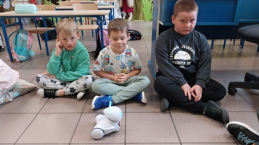 W październiku 2025 r. na zajęciach w Oddziale Przedszkolnym pierwszy raz zagościł robot Photon. Podczas zajęć uczniowie rozwijali umiejętność rozpoznawania stron prawa-lewa oraz ćwiczyli umiejętność czekania na własną kolej.