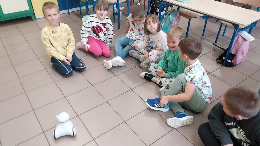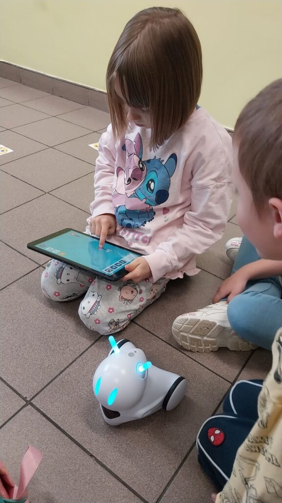 internetowej – doprowadzając do obranego celu. Uczniowie mogli nim sterować w różnych kierunkach, programować jak ma się poruszać, zmieniać kolory i wydawać różne dźwięki. Praca z robotem rozwija kreatywność, myślenie logiczne i abstrakcyjne, a także uczy dzieci dokładności i wytrwałości w wykonywaniu zadań.